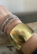 De messing armbanden zijn enorm leuk te combineren met andere sieraden.